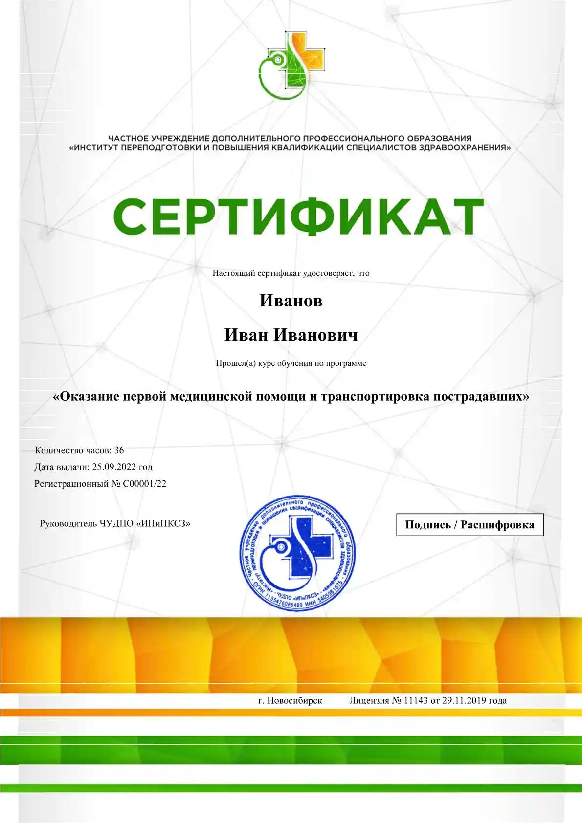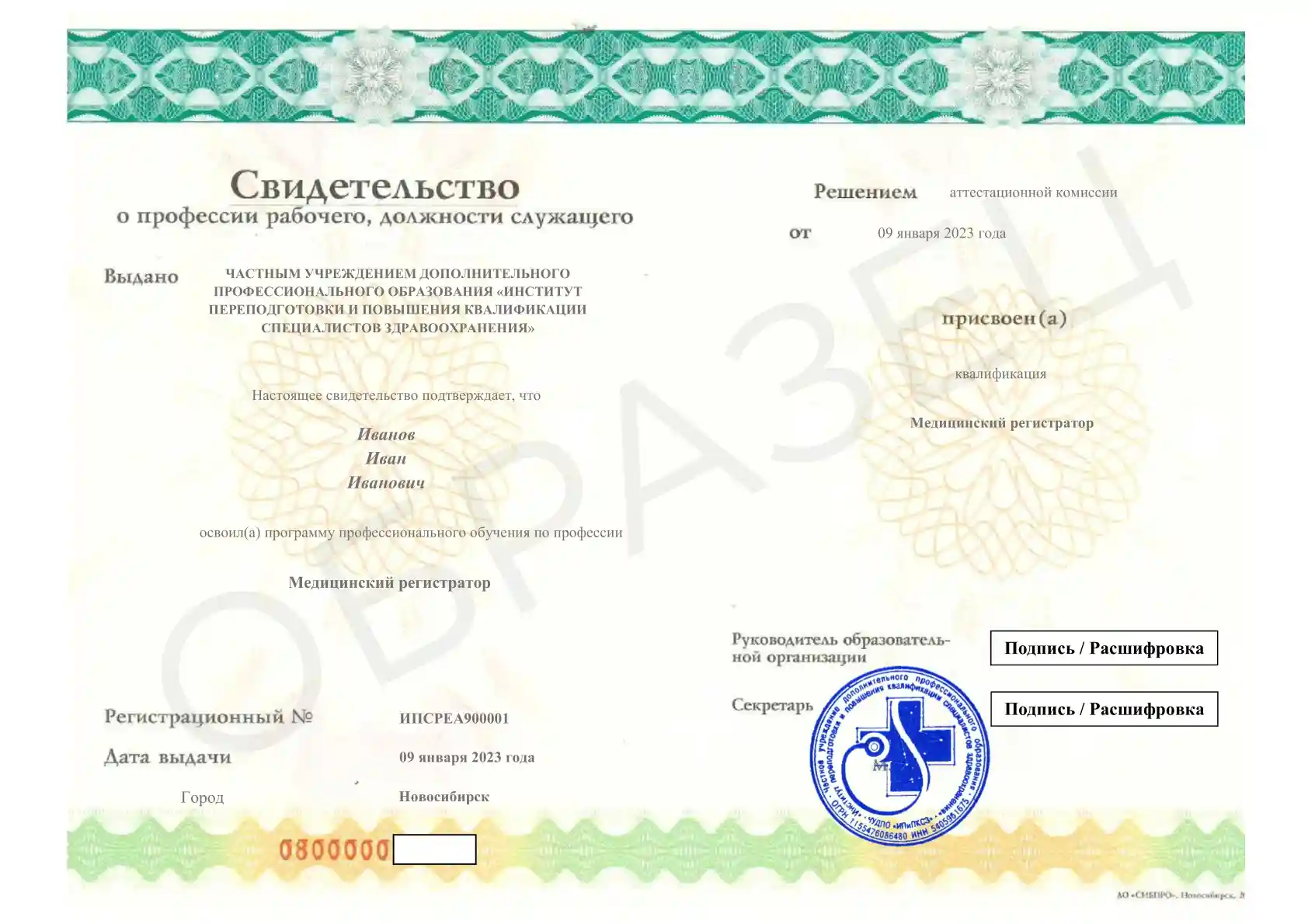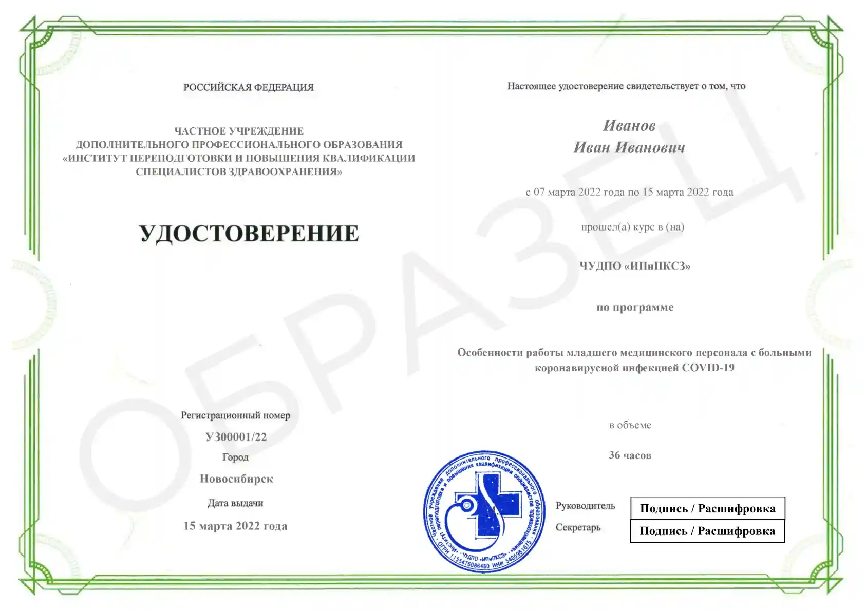 В конце обучения вы получите документы установленного образца, зарегистрированные на едином портале ФИС ФРДО